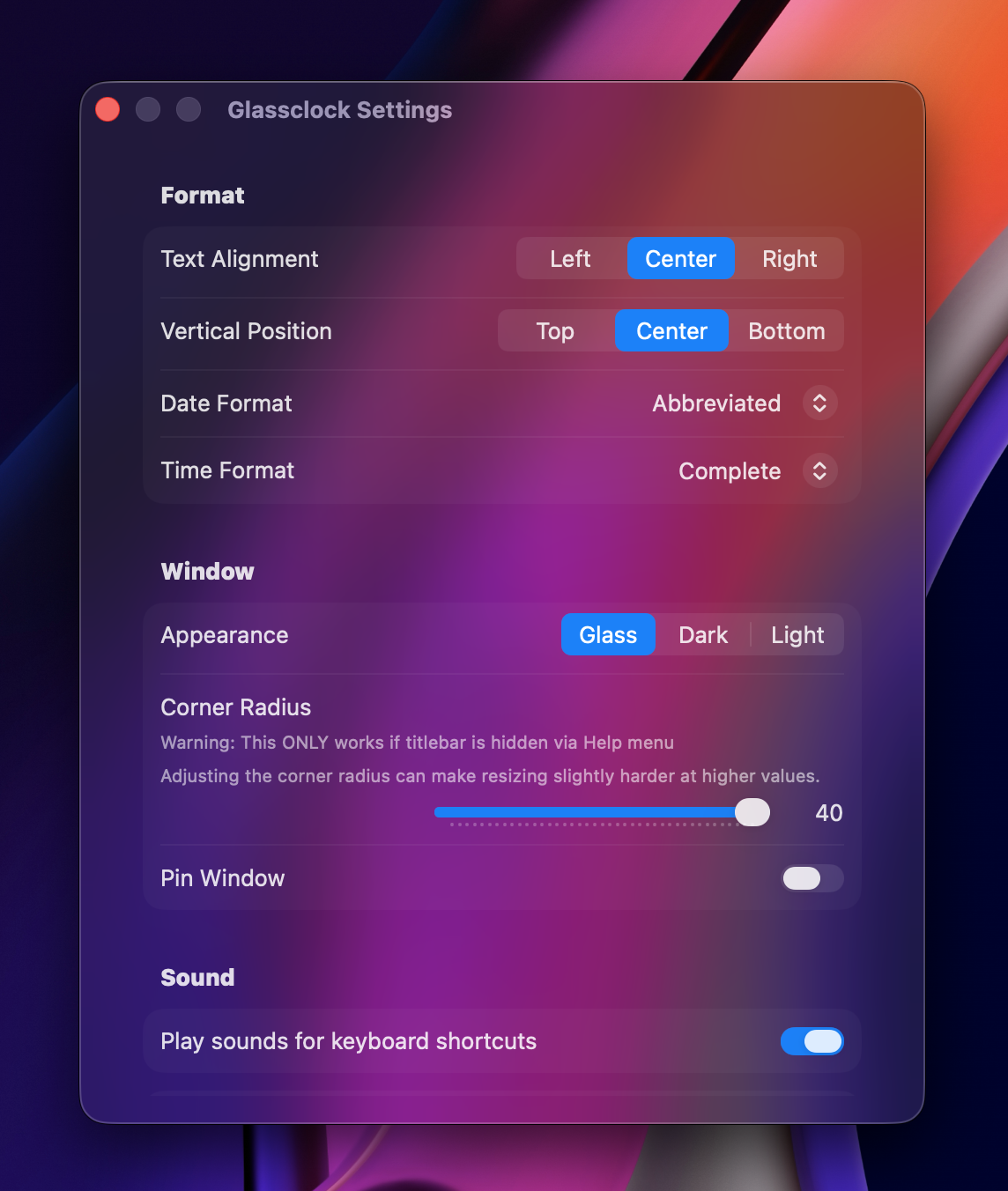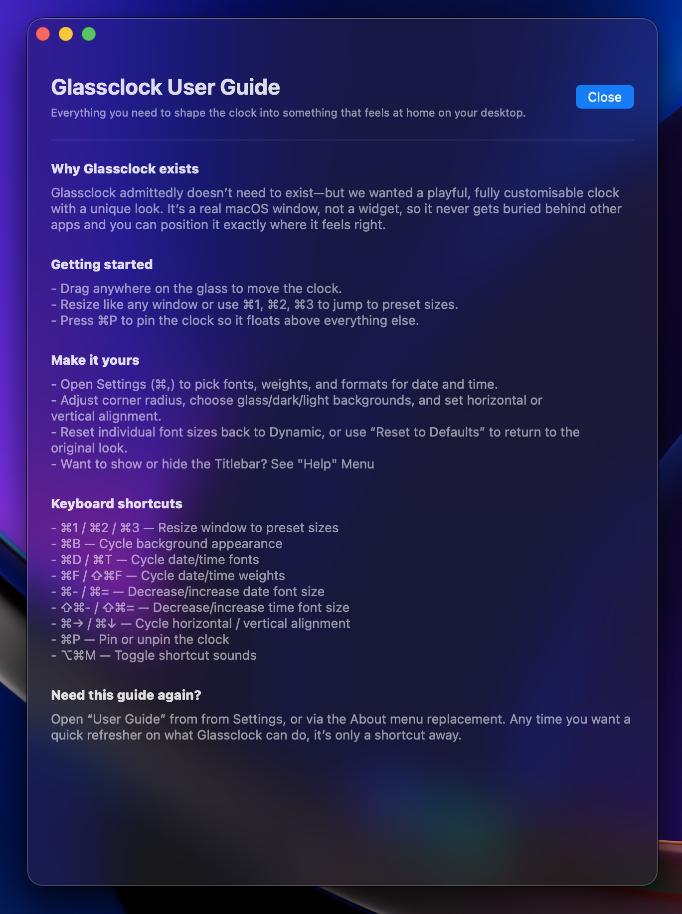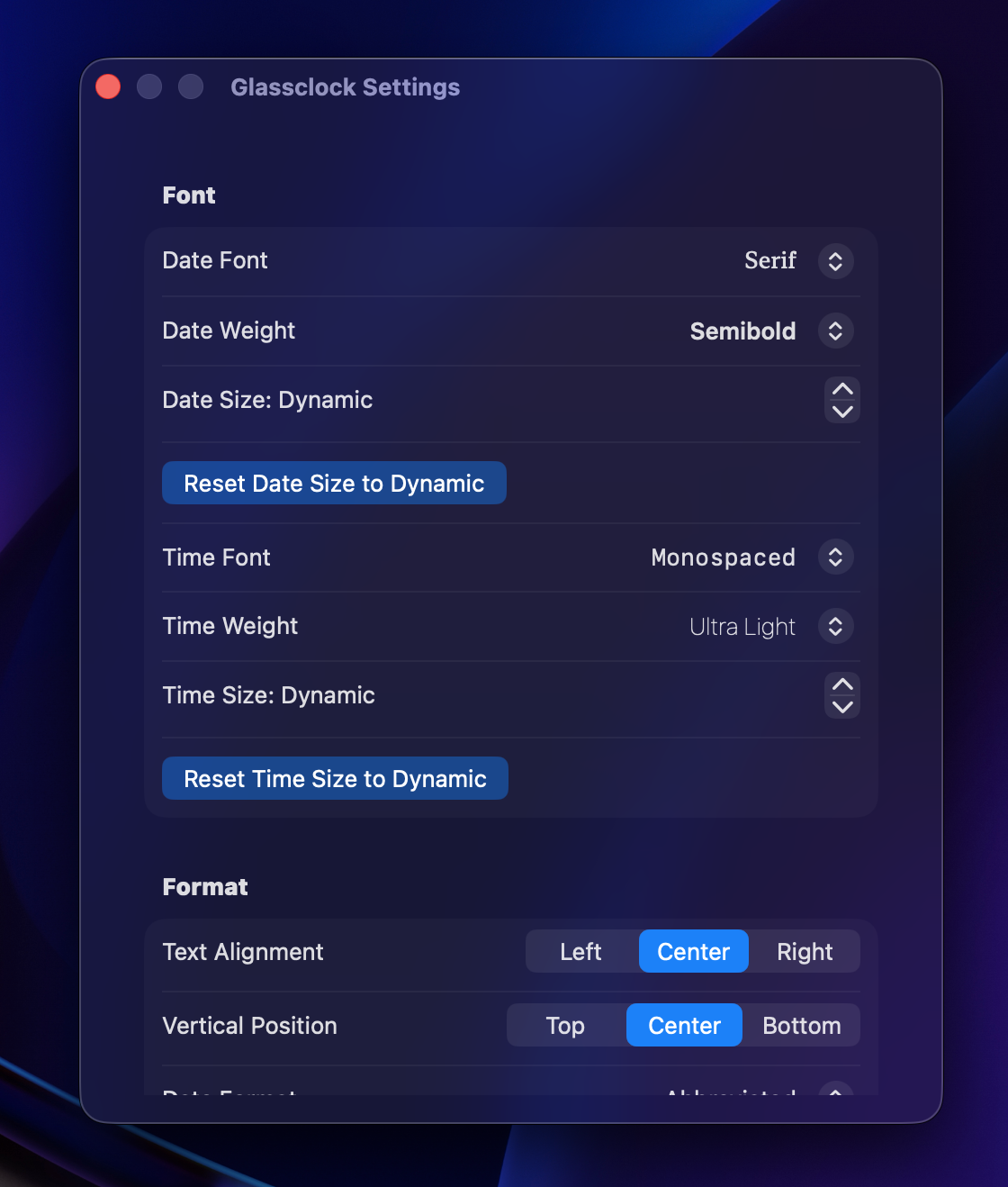 Glassclock is an ultra customizable glassy alternative to the default Mac clocks.